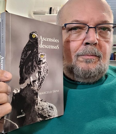 Tal como um aedo,[2] Marcelo Tápia dá ao leitor revelações sobre a impermanência e a circularidade da vida, sobre a continuidade cotidiana do mito, sobre a própria voz poética e como ela se transmuta com o passar do tempo na vida do poeta. É essa a intensidade que Ascensões e Descensos, novo livro do autor (Editora Madamu, 2025, 160 p.) consegue impregnar em cada um dos poemas escritos. Obra de um poeta que domina o ofício, mas ainda se permite o assombro, o volume é uma meditação sobre os movimentos da existência: subir e cair, criar e dissolver-se, viver e, por fim, compreender o limite.